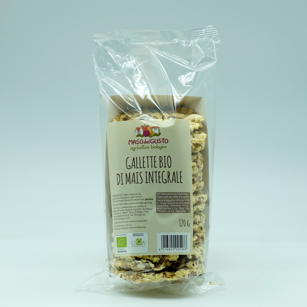 Maso del Gusto propone queste fragranti gallette di mais integrale coltivato senza l'uso di sostanze chimiche e di sintesi.